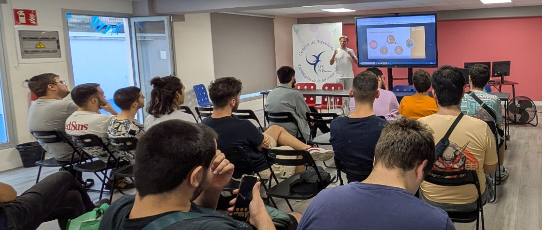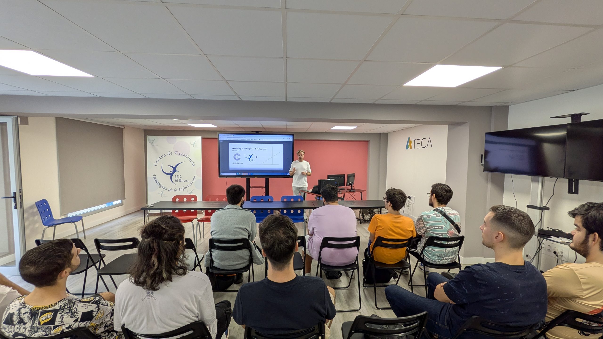 El pasado lunes 25 de noviembre, el alumnado del Curso de Especialización en Desarrollo de Videojuegos y Realidad Virtual del IES El Rincón tuvo la oportunidad de participar en la charla titulada «Marketing at Videogames Development Course». La sesión fue impartida por Hannu Okkonen, profesor del centro finlandés Careeria, reconocido por su enfoque innovador en formación profesional.
