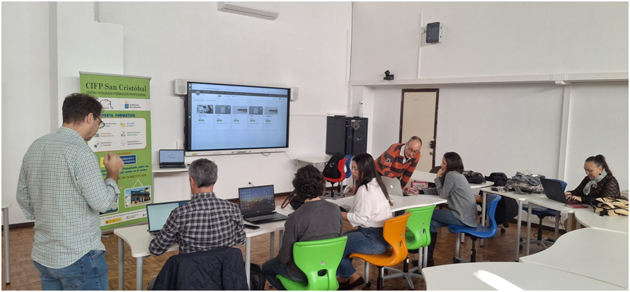 El proceso formativo del profesorado de los centros CIFP San Cristóbal y CIFP San Sebastián de La Gomera, iniciado en el mes de diciembre, se ha extendido durante varias semanas. Aunque hubo un breve paréntesis por circunstancias ajenas al proyecto, la actividad pudo retomarse con normalidad y culminó para el profesorado del CIFP San Cristóbal con un taller práctico celebrado el 28 de enero en el Aula Ateca de dicho centro (queda pendiente un taller práctico en el CIFP San Sebastián de La Gomera para el profesorado de su centro educativo).
