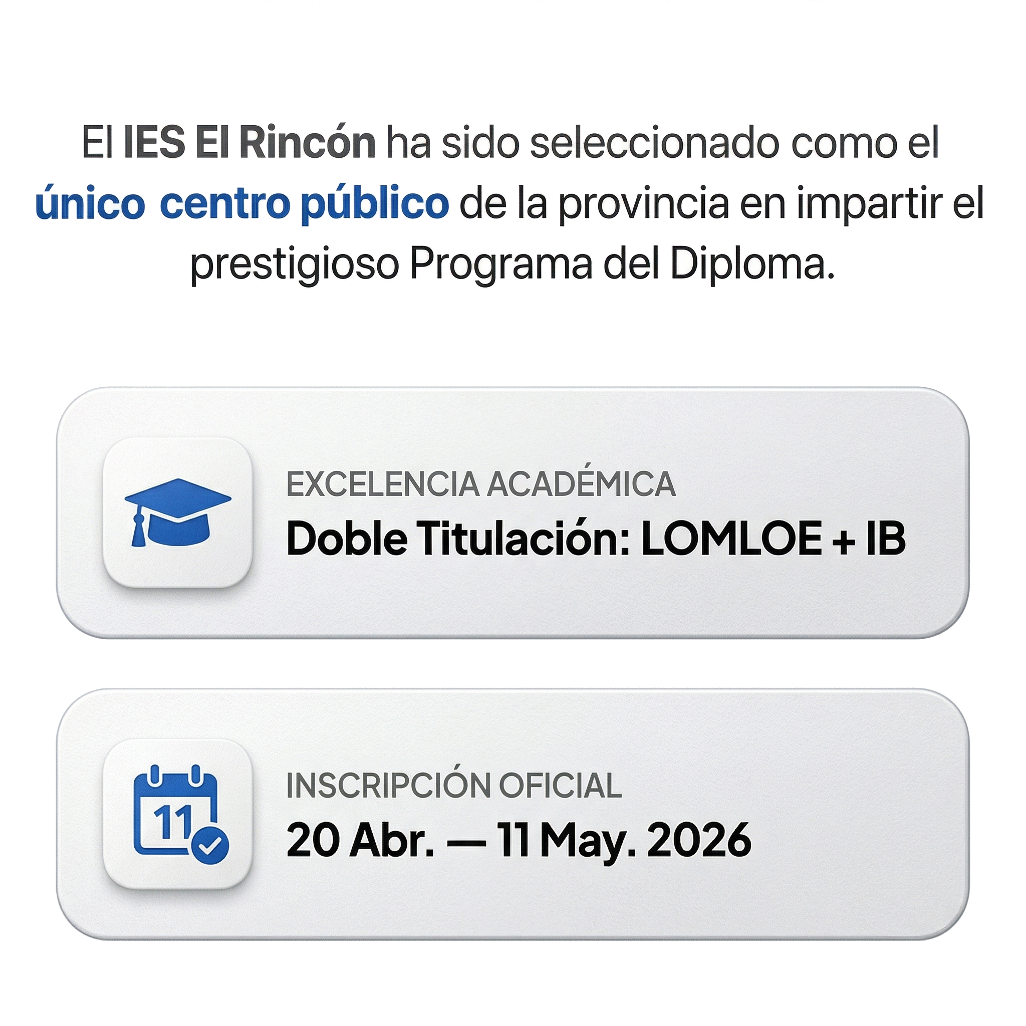 El IES El Rincón invita a todas las familias a una reunión informativa sobre el Bachillerato Internacional (Programa del Diploma).