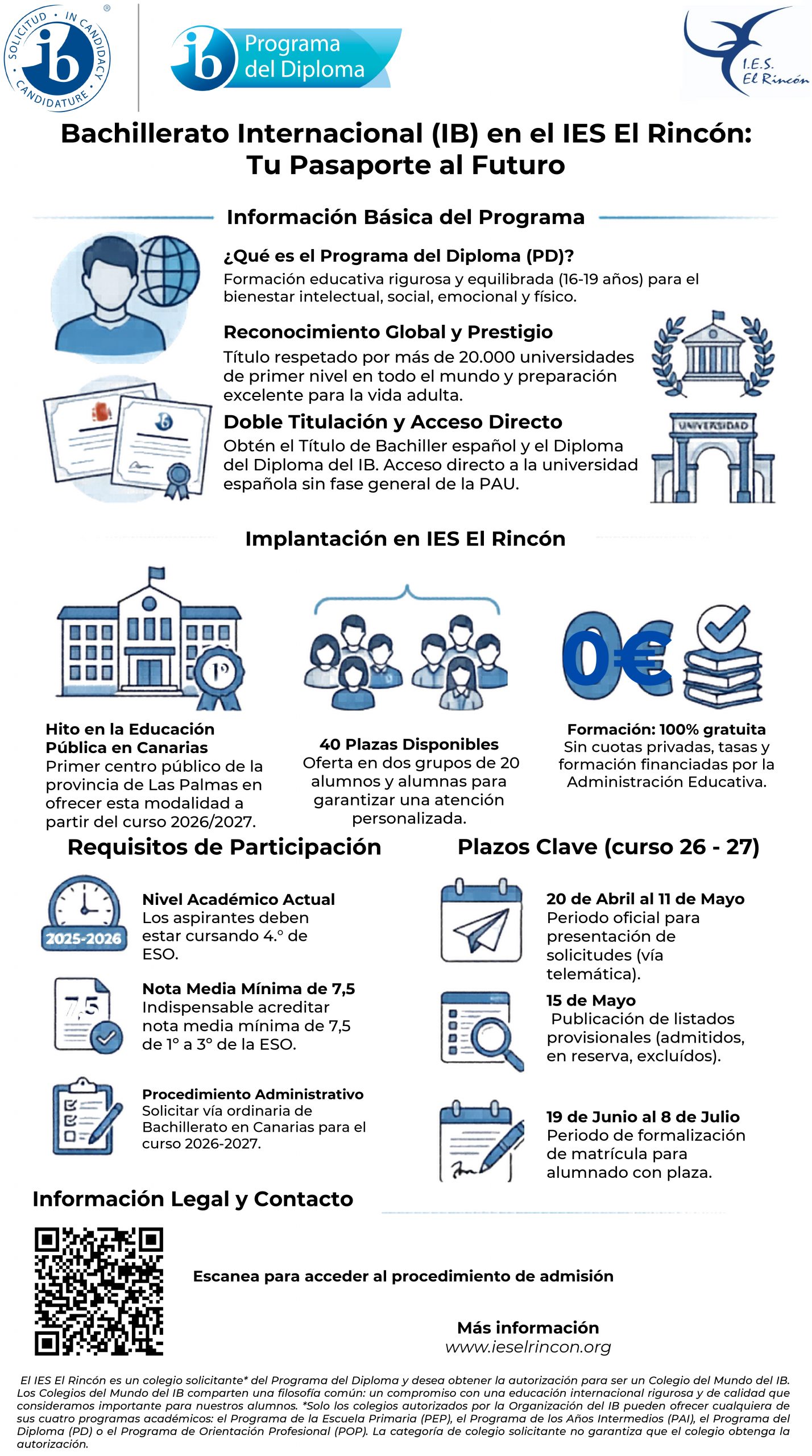 El IES El Rincón abre una nueva oportunidad educativa: el Bachillerato Internacional (IB) llega por primera vez a un centro público de la provincia de Las Palmas. Una formación de excelencia, gratuita y con reconocimiento internacional.